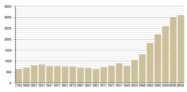 Динаміка населення (base Cassini de l'EHESS pour les nombres retenus jusque 1962[3], base Insee à partir de 1968 (population sans doubles comptes puis population municipale à partir de 2006)[4] · [5] ):