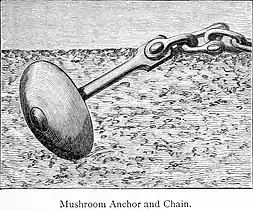 - Грибоподібний якір — якір у формі сферичного сегмента з веретеном, потовщеним на верхньому кінці (для забезпечення його горизонтального положення);