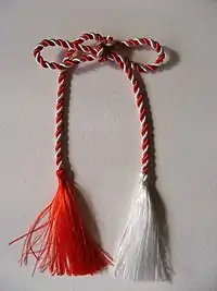 За іншою легендою, Сонце спустилось на землю в образі прекрасної дівчини. А злий Змій викрав і закрив його в своєму палаці. Після цього перестали співати пташки, діти забули, що таке радість та сміх, і весь світ поринув у печаль. Один сміливий юнак вирішив врятувати Сонце. Цілий рік він шукав палац Змія, а коли знайшов, то викликав його на двобій. Вони довго боролись, але в результаті юнак переміг Змія та визволив прекрасне Сонце. Воно піднялось на небо та осяяло весь світ. Настала весна, природа ожила, і люди згадали що таке радість. Проте сміливий юнак не встиг побачити весну. Його тепла кров стікала на сніг. Впала остання крапля крові, він помер від ран. Там де танув сніг, виростали білі квітки — підсніжники. З тієї пори на честь визволення світу від темряви та печалі люди сплітають два шнурочки з квіточками білого та червоного кольорів. Червоний символізує любов до краси і пам'ять про кров загиблого юнака, а білий — здоров'я та чистоту підсніжника, першої весняної квітки.[1]