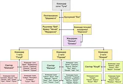 | Командир 3-ї чоти | Тарабань Микола | «Туча» | 1921 | Будомир | 11.1944 — 03.1945 |