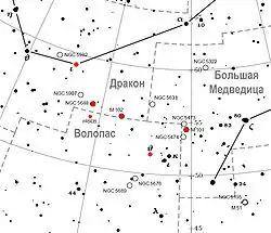 Дуже слабка туманність між ο Волопаса і ι Дракона, рядом знаходиться зірка 6-ї величини. [3]