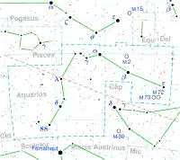- M72 — (в півтора градусах на захід) саме тьмяне кулясте скупчення в каталозі Мессьє;
