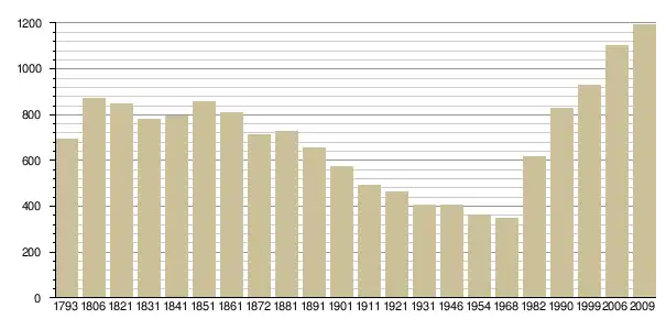 Динаміка населення (INSEE[4] і Cassini[5] ):