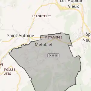 - Розташування муніципалітету Метаб'єф на мапі Франції та сусідні муніципалітети