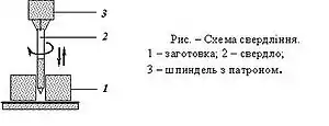 Свердління — один зі способів утворення в заготовках і деталях наскрізних і глухих отворів за допомогою свердла. Свердління виконують спіральними свердлами з високоякісної сталі, а також свердлами з різальними кромками із твердих сплавів. При роботі свердлувального верстату свердло закріплюється в шпинделі верстата і робить водночас обертальний рух різання і поступальний рух подачі. Деталь при цьому нерухома (рис.).