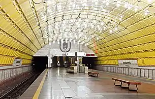 Тип станції — односклепінна глибокого закладення. Довжина посадкових платформ — 102 м.