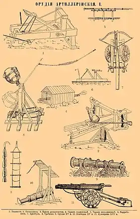 - Шаабль (онагр, що приводиться в дію масивним луком, закріпленим на рамі відбійника)