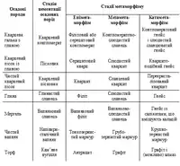 | Осадові породи | Стадія цементації осадових порід | Стадії метаморфізму | ||