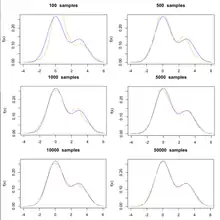 - МКМЛ Ланжевена, та інші методи, що покладаються на градієнт (та, можливо, другу похідну) логарифму апостеріорного, уникають випадкового блукання, роблячи пропозиції, що правдоподібніше знаходяться в напрямку вищої густини ймовірності.[14]