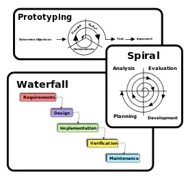 Поширені методології програмування: водоспадна модель (waterfall), макетування (prototyping), Ітеративна та інкрементна розробка (iterative and incremental development), (spiral development), спіральна модель (spiral model), швидка розробка програмного забезпечення (rapid application development), екстремальне програмування (extreme programming), різні види методологій гнучкої розробки (agile methodology).