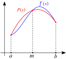 Якщо замінити функцію квадратичним поліномом що приймає ті ж значення що й у точках a,b і m = (a+b) / 2. використавши інтерполяційну формулу Лагранжа, то одержимо формулу:
