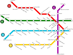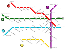 | Лінія B | Червоний | 1930 | Кажао — ім. Федеріко Лакросе | ім. Леандро Н. Алема — ім. Х. М. Росаса | 11,9 | 17 | 412 882 | |||
