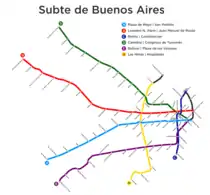 Метрополітен Буенос-Айреса складається з шести ліній, названих латинськими літерами і кольорами, які мають загальну довжину 56,7 км. Уся мережа є повністю підземною. Також проектуються три нових лінії. Разом з ними довжина шляхів метрополітену буде становити 75 км і буде містити 127 станцій.