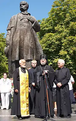 | Єпископ Мефодій на урочистостях з нагоди Дня незалежності (Луганськ) | ||