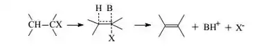 Цей механізм властивий сильним нуклеофілам, які є слабкими основами. Таким реакціям сприяють полярні апpотонні розчинники, реакції син-елімінування цього типу не відомі, завжди відбувається анти-елімінування.