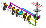 - Вторинний (підпорядкований) вал жорстко з’єднаний з карданним валом, або в тренсекслах — безпосередньо з головною передачею.