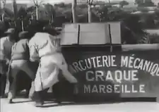 У фільмі показана вигадана машина, яка являє собою ящик з двох частин, до задньої стінки якого прироблено колесо, яке обертається вручну, а на передній розміщено напис «Механічний ковбасний перемелювач по-марсельськи» (фр. Charcuterie Mecanique Craque a Marseille, в написі укладена гра слів: слово craque може також означати «брехню»). У ліву частину машини завантажують живу свиню, а з правої тут же дістають готові сосиски, свинячі копитця, окости, упаковані м'ясні делікатеси і навіть дитячі іграшки.