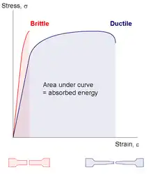- розтягуванні конструкційних матеріалів оцінюється відносним видовженням або відносним звуженням після розриву[1];