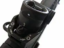 - Зростаюча тенденція, що почалася з пневматичних гвинтівок і дульнозарядних рушниць, полягає в використанні коротких відрізків оптичного волокна для точок, зроблених таким чином, що навколишній світ, падаючий на довжину волокна, концентрується на кінці, роблячи точки трохи яскравіше. ніж оточення. Цей метод найчастіше застосовується в мушках, але багато виробників пропонують приціли, які використовують волокно на мушці і цілику. Волоконно-оптичні приціли тепер можна знайти на пістолетах, гвинтівках і дробовиках, як в якості додаткового обладнання на ринку, так і в якості додаткового обладнання встановленого на заводській зброї.[18]