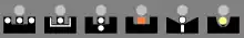 - В самозарядних пістолетах найпоширенішим типом аксесуарів є яскраво-біла крапка, намальована на мушці біля верхньої частини клинка, і крапка на кожній стороні вирізу цілика. При поганій освітленості треба відцентрувати крапку на мушці горизонтально між крапаками на цілику, а ціль повинна бути посередині над центральною крапкою. Різні постачальники зброї пропонують крапки різних кольорів.[13]