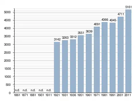 Станом на 31 грудня 2014 року в муніципалітеті офіційно проживав 631 іноземець з 37 країн, серед них 272 громадяни країн Євросоюзу та 47 громадян України.[4]