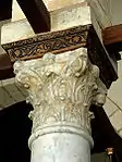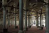 Усередині колонної зали — міхраб, вкритий різьбленим стуком. У залі мечеті понад сто мармурових колон з різьбленими капітелями коринфського ордеру. Колони, імовірно, були перенесені в мечеть з римських і візантійських будівель. Про це, зокрема свідчить той факт, що для того, щоб зрівняти висоту колон, їх поставили на мармурові куби різних розмірів[1].