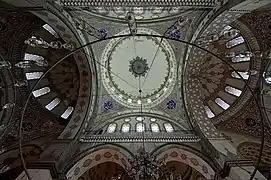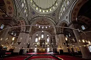 Кожна з двох аркад, які підтримують купол, розділені на дві менші аркади, які покояться на двох величезних колонах з червоного порфіру, діаметром 1 метр, з мармуровими капітелями. Є версія, що ці колони знаходились на форумі Тавра, де побудована мечеть[4]. Над двома аркадами, знаходиться подвійний ряд округлих вікон.