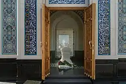 Біля входу в мавзолей встановлена мармурова плита, на якій узбецькою й англійською мовами викарбувано: «Це священне місце є вічним притулком Першого Президента Республіки Узбекистан, великого державного та політичного діяча, шановного і улюбленого сина узбецького народу Іслама Абдуганійовича Карімова».[4]