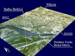 Місто розташоване на відстані[2] 184 км на північний схід від Бухареста, 53 км на захід від Тулчі, 126 км на північ від Констанци, 20 км на південний схід від Галаца.