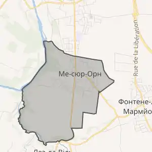 - Розташування муніципалітету Ме-сюр-Орн на мапі Франції та сусідні муніципалітети