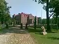 Архітектором нового представницького будинку в стилі історизму, спорудженого в 1912 р., був Владислав Карпович. У двоповерховому масивному будинку відчувається вплив і неоготики, і модерну. Сходчастий фронтон і зубчасті кутові башти нагадують архітектуру замків. Своєрідне і зовнішнє оздоблення: цегляний будинок іззовні вкрито т.з. штучним гранітом – бетонними блоками, які тільки імітують граніт. Вони здаються настільки натуральними, що багато істориків архітектури і дослідник миз сприймав їх як справжні гранітні плити.