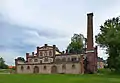- Чудовий ансамбль підручних споруд складається приблизно з двадцяти будівель — будинок керуючого, винокурня, конюшня, кузня та ін. Більшість з них побудовані з природного каменю і прикрашені цеглою, за допомогою якого створено виразні візерунки. Дзвіницю, натхнену архітектурою середньовічних фортець, виконано як кутову башту кам'яної огорожі. Крім того, є декілька вортних башт і будівель, які створюють чудовий краєвид. Увесь комплекс знаходиться на березі мальовничого озера.