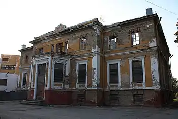 Головний будинок споруджено в стилі неоренесансу з чотирикутною вежею в правій частині будови.