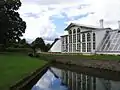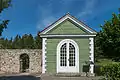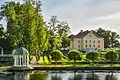 Велика кількість примітних підручних будівель і чудовий парк з різними спорудами належать у своїй більшості до XIX ст. Просторий майданчик перед головним будинком оточують клуня і конюшня-каретня з аркадою, а поблизу під'їзної дороги стоять два гранітних обеліски. Неподалік знаходяться будинок управителя, кузня та інші будівлі. У парку зі ставками за панським будинком є кілька альтанок. Далі панський парк переходить у природний лісопарк.