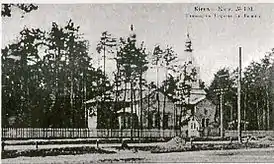 На початку ХХ ст. на західній околиці Києва активно забудовувалися Святошинські дачі. 1901 року комітет з благоустрою запропонував спорудити в селищі храм Св. Миколая. Кошти вдалося зібрати доволі швидко і вже 24 червня 1907 р. дерев'яний храм, споруджений за проектом відомого київського архітектора М.Горденіна, було освячено київським митрополитом Флавіаном. Чудовий іконостас у стилі модерн виготовив для неї художник М. Л. Реутов, а ікони для нього намалював художник І. Ф. Селезньов.