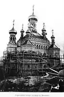 До 1900 року спорудження велетенського собору вже було завершене «учорні» (без опоряджувальних робіт), але смерть великої княгині Олександри Петрівни дещо уповільнила будівництво. Усі будівельні витрати, що склали у підсумку 392 257 руб. 90 коп.[2], забезпечувалися благодійними пожертвами (серед провідних жертвувачів був Нікола Терещенко).