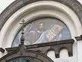 Зображення Ісуса Христа перед головними дверми собору.