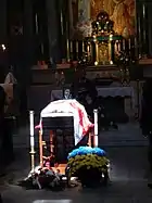 22 липня у кафедральному костелі Святого Олександра в Києві відбулося прощання[7]. Домовину з тілом покійного накрили трьома прапорами — Естонії, України та Білорусі. Похований на Байковому кладовищі у Києві[8].