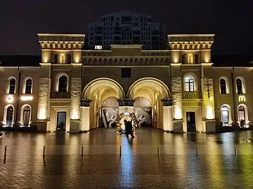 2021 року реновацію Арсенальної площі завершили. На брамі відновили декор, зокрема чотири лев'ячі маскарони. У будівлі розмістили Макдональдс та інші заклади харчування. 1 вересня відбулося відкриття громадського простору на площі і світломузичного фонтану із системою динамічних форсунок, яка працює за допомогою 56 насосів. В урочистях взяли участь міський голова Віталій Кличко, піаніст Євген Хмара, симфонічний оркестр. Однак уже 2 вересня, наступного дня після відкриття, фонтан пошкодили. Вантажівка наїхала на фонтанну плитку і частково провалила її[25][26][27]