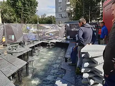 - На Арсенальній площі відкриють пішоходний фонтан, який показуватиме світломузичне шоу (укр.). 31 серпня 2021. Архів оригіналу за 2 вересня 2021.