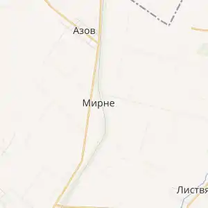 Селище Мирне знаходиться за 2 км від селища Азов. Через селище проходить залізниця, роз'їзд 376 км.