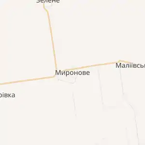 Село Миронове розміщене за 2 км від села Маліївське і за 3,5 км від сіл Красногорівка та Зелене. По селу протікає пересихаючий струмок із загатою.