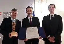 - Шюссель і Шпінделеггер вітають Ферреро-Вальднера та Миро Гаврана з премією «Алоїз Мок Європа». Оголошення від 22 грудня 2017 року, завантажено 28 грудня 2017 року.