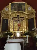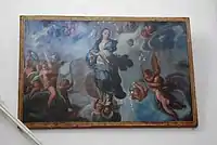 Залишки чорно білих стінописів із зображенням чотирьох св. жінок, монастир Михаїла Архангела в Уєхоцинго.