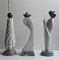 «Вишенька», 2020, мармур, граніт, мідь, висота – 58 см, діаметр – 15 см, власність автора. «Цунамі», 2020, мармур, габро, 45,5х14х14 см, власність автора. «Торнадо», 2020, мармур, габро, висота – 47 см, діаметр – 15,5 см, власність автора