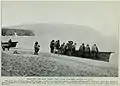 Чукчі з Дежньово витягають човна на берег, 1913