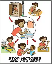 Миття рук з милом є найбільш ефективним і недорогим способом профілактики діареї і гострих респіраторних інфекцій (ГРІ), і є автоматичною поведінкою в будинках, школах і громадах по всьому світу. Пневмонія, поширене ГРЗ, є причиною смертності серед дітей до п'яти років, забираючи життя приблизно 1,8 мільйона дітей на рік. Діарея та пневмонія разом є причиною майже 3,5 мільйона дитячих смертей щорічно.[11] За даними ЮНІСЕФ, перетворення на вкорінену звичку миття рук з милом перед їжею та після користування туалетом може врятувати більше життів, ніж будь-яка окрема вакцина чи медичне втручання, зменшивши смерть від діареї майже наполовину та смерть від ГРВІ на одну чверть. Миття рук, як правило, входить у комплекс із іншими заходами санітарії.