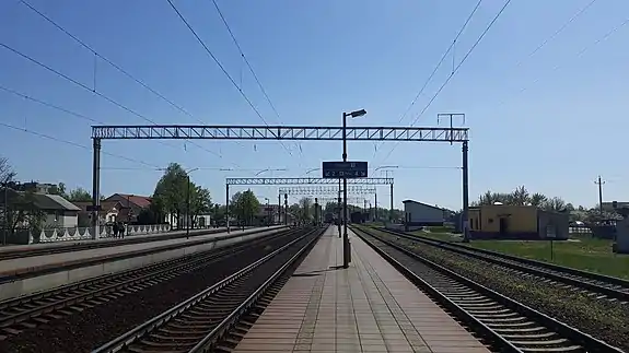 1970 року електрифікована змінним струмом (~25 кВ) в складі дільниці Мінськ — Пуховичі.