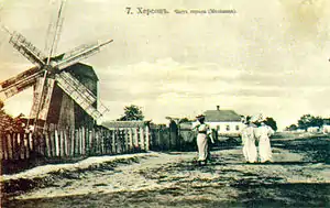 Невеликий дворик або господарство довкола млина будувалися без якого-небудь дозволу на це, а вузькі вулиці шириною в 2-3 сажні тягнулися уздовж старих доріг. На плані Херсона 1842 року вже позначена місцевість — «Млини, яка давно стала передмістям, що хаотично розростається. На початок 60-х років XIX століття тут працювало близько 125 млинів; навколо них розташовувалися невеликі садиби. У 1872 році почалося перепланування Млинів. Район був розбитий на прямокутні квартали з прив'язкою до Грецького і Військового передмість. Реконструкція була успішно здійснена, але й тепер у Млинах всередині нових кварталів можна знайти старі звивисті провулки.