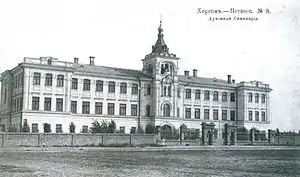 Випускники семінарії отримували місця дячків, пономарів, псаломщиків та сільських вчителів. Семінарія розміщувалася спочатку в будинку, що належав Софійській (Грецькій) церкві, а з 1849 року – в будинку Успенського собору. В 1874 р. семінарія переїхала на Богородицьку вулицю, а 5 вересня 1901 р. міська Дума на безкоштовній основі виділила духовенству Херсонського училищного округу земельну ділянку в передмісті Млини по вул. Бериславській. В 1905-1906 роки ділянку було обнесено кам’яною огорожею та споруджено нові будівлі: лікарню, лазню, сараї, облаштовано сад. 28 червня 1908 р. відбулося закладення головного корпусу. Будівництво здійснювалося головним інженером Васильєвим О.О. згідно з планом та кошторисом архітектора Плаксицького Д.Т. й обійшлося у 103 тис. рублів. 9 грудня 1909 р. будівельною комісією було засвідчено завершення будівництва, і влітку 1910 р. училище перемістилося до нової будівлі. Будівлю, що мала три поверхи та дзвіницю, було споруджено з одеського вапняку. З північної сторони було прибудовано церкву Святого Іоана Золотоустого.